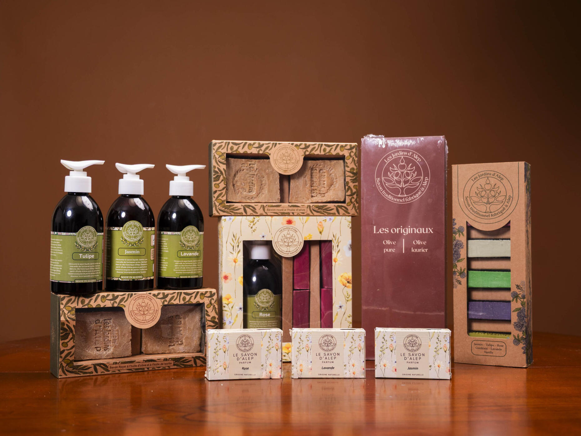 Savons traditionnels à l’huile d’olive et laurier, coffrets parfumés, formats individuels et vrac.